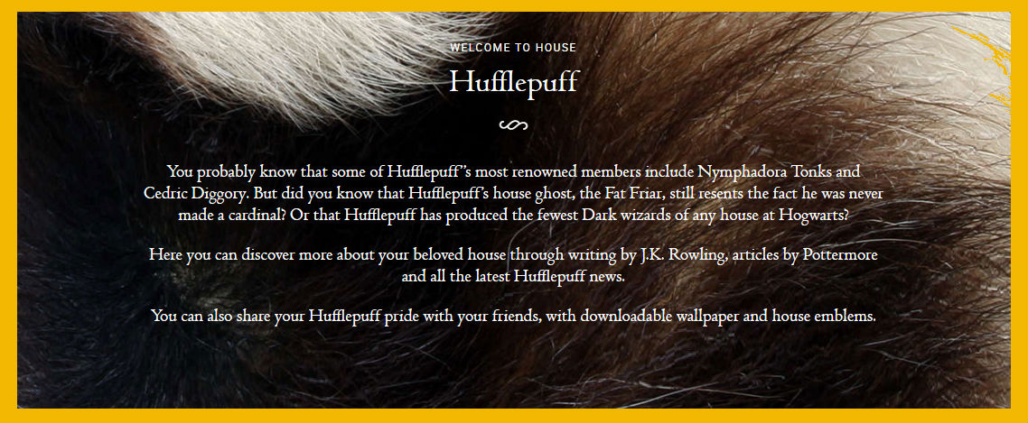 The sorting is back on Pottermore! I was so excited to find out that the sorting function has been reinstated on Pottermore because it was lovely to have your own house in the previous incarnation of the site. Way back when I first sorted myself into a house, I got Hufflepuff as a result….and the same thing happened again! I’ve always related to Slytherin the most, but I guess I have to come to terms with the fact that inside this Slytherin there was always a little Hufflepuff heart beating.